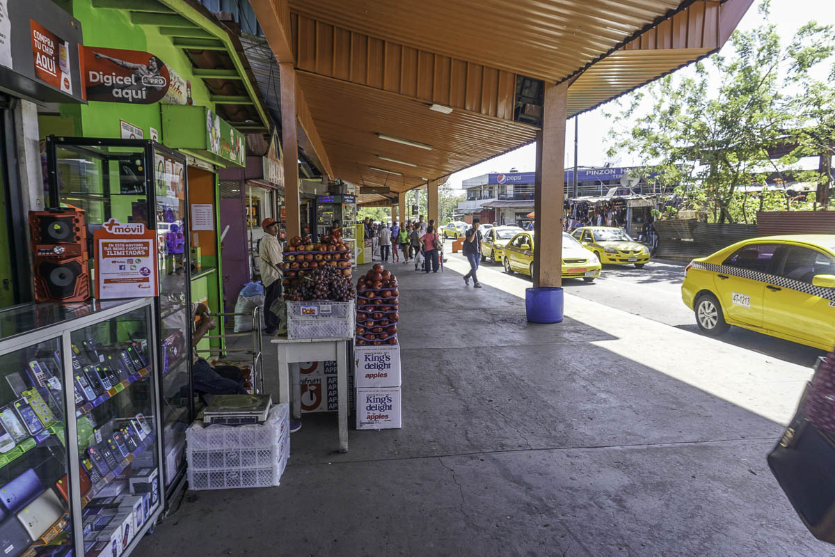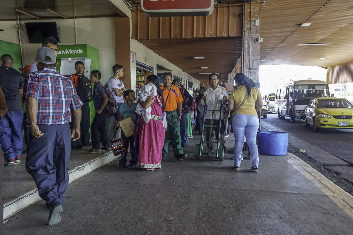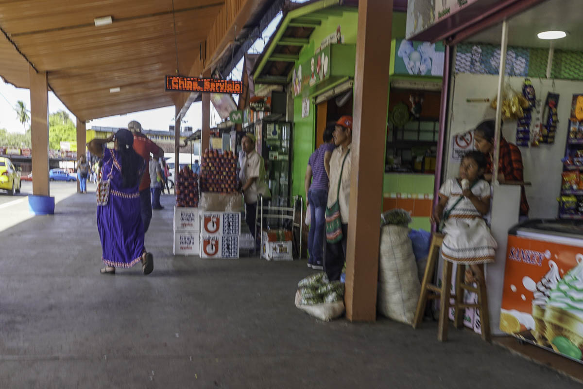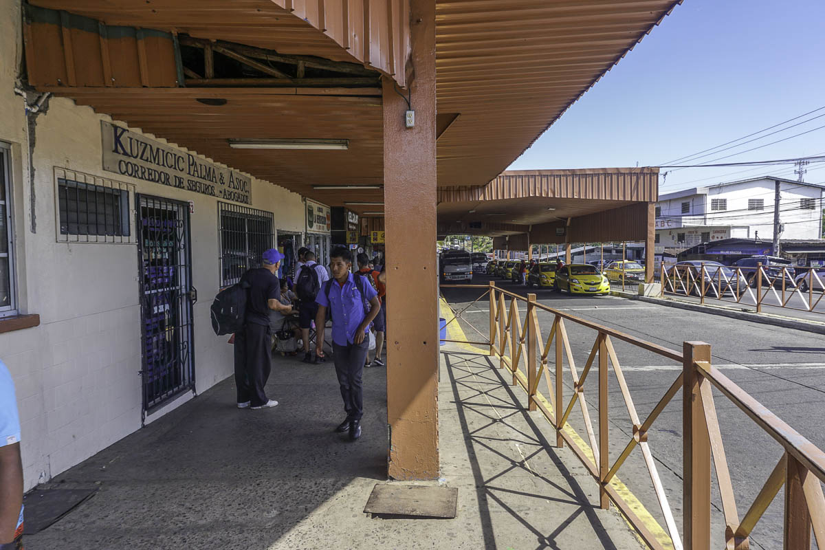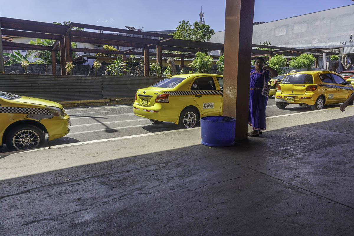We grabbed a pickup truck taxi, pickups are a good thing with some of the rough roads, to the Pan-American Highway where we hopped on a little bus to David. We waited at the terminal for a while until Sharna and Bryant found us. There are more indigenous people in this area, easily identifiable by the colorful (polyester) sack-like dresses that they wear. I was amused by, what I called, the ballet of taxis coming by to pick people up.
