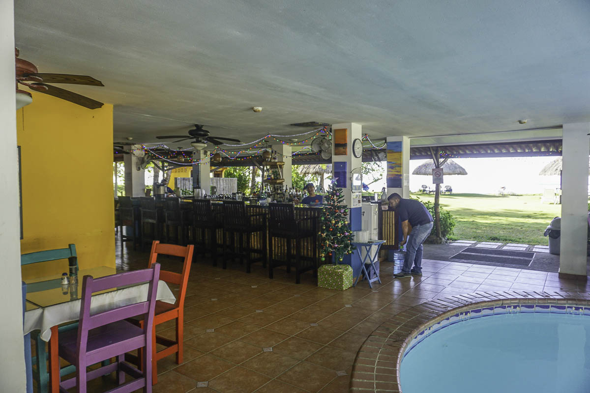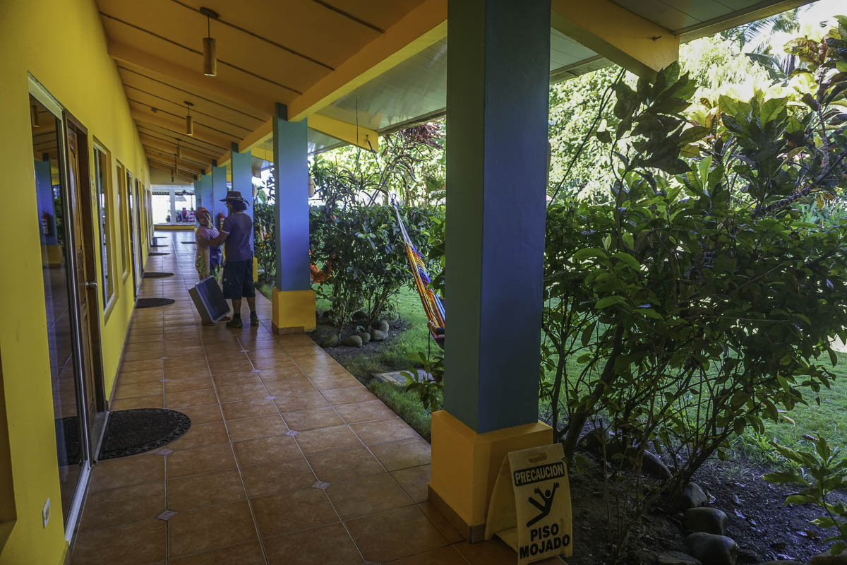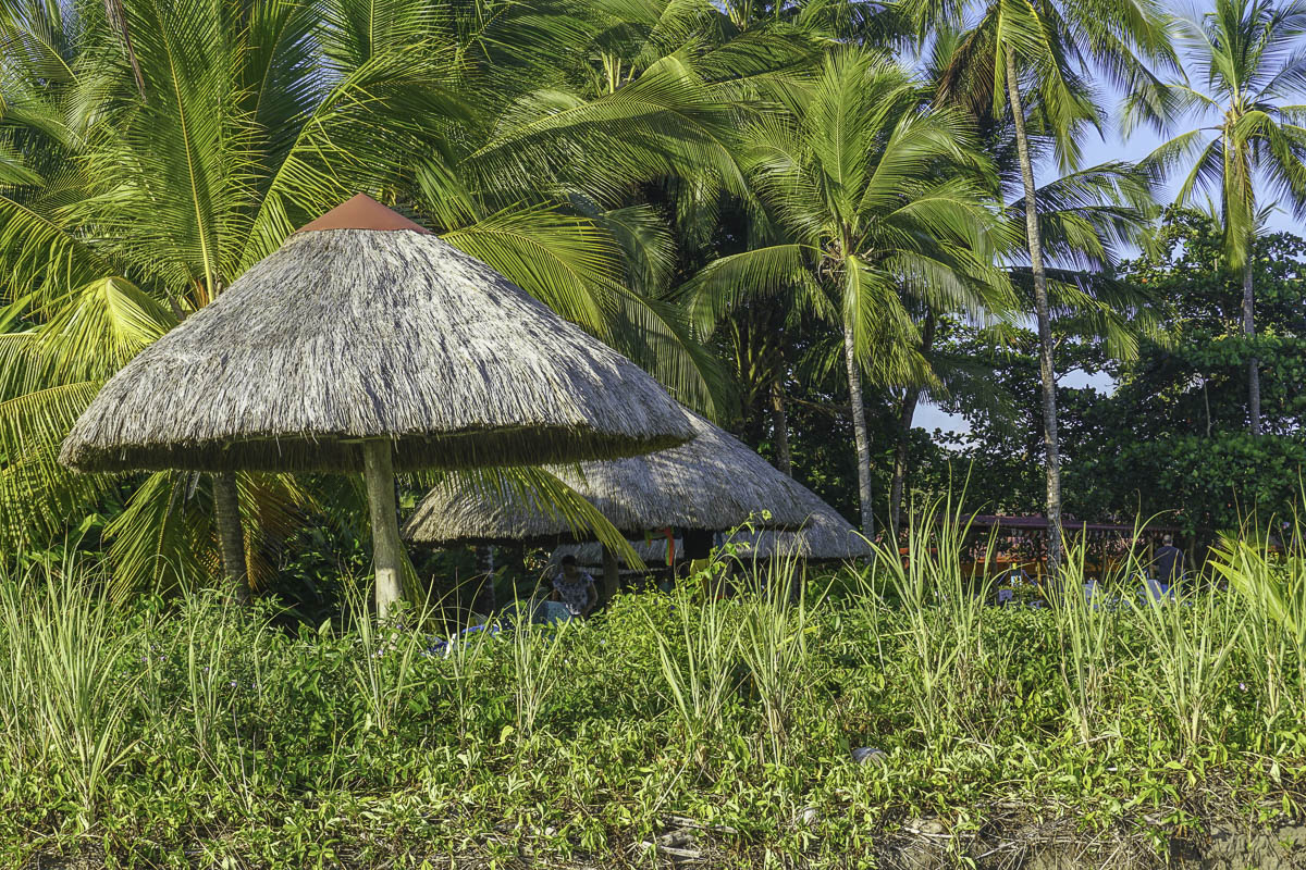 We are staying a the Las Lajas Beach Resort. The bus let us off at Las Cruces de San Felix (San Felix Crossing) on the Trans-american Highway. The little town of Las Lajas is about 2 kilometers away. The beach is another 10. We hopped in a pickup truck taxi, and I’m glad it was. He took back roads, as we had to drop of another passenger, an indigenous woman. The roads were a bit tough.